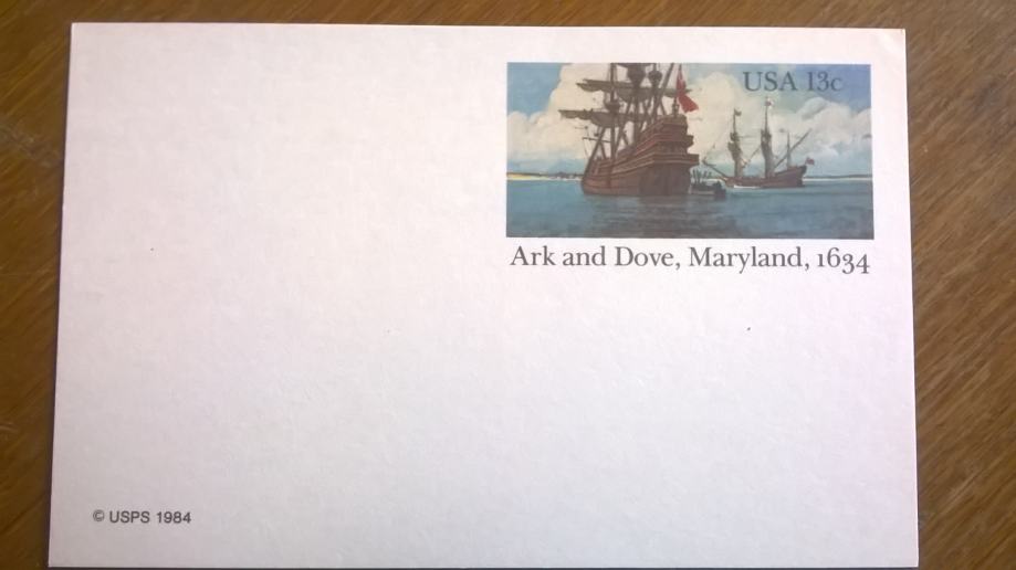 prodajem postal card tema ARK AN DOVE, maryland 1634