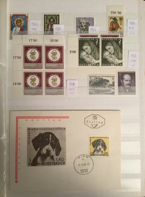Lot čistih (nerabljenih) MNH kompletnih serija i pojedinačnih izdanja maraka Austrije.