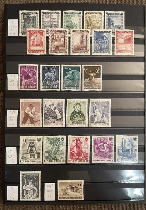 Lot čistih (nerabljenih) MNH kompletnih serija i pojedinačnih izdanja maraka Austrije. Sve na slikama. 091/6550922. Poštarina prema cjeniku Hrvatske pošte ili osobno preuzimanje. Ne šaljem pouzećem.
