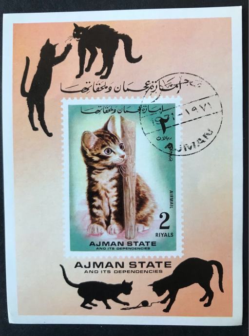 BLOK, AJMAN, 1972, FAUNA, MAČKE, ZRAČNA POŠA