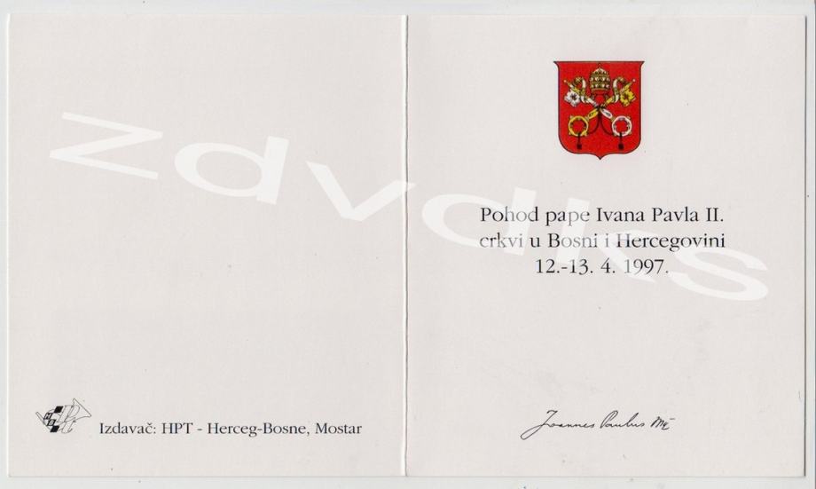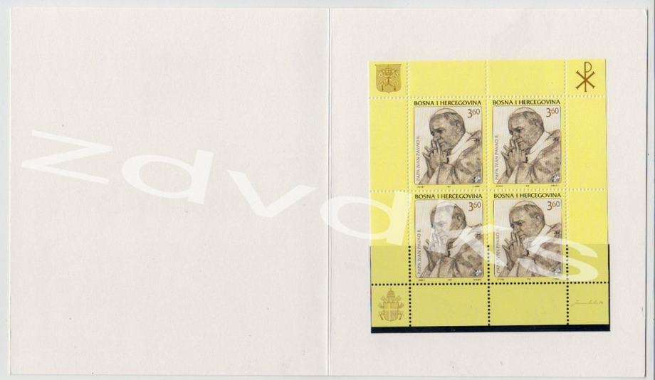 BOSNA I HERCEGOVINA PAPA IVAN PAVAO ll MALI ARAK U FOLDERU 1997, MNH