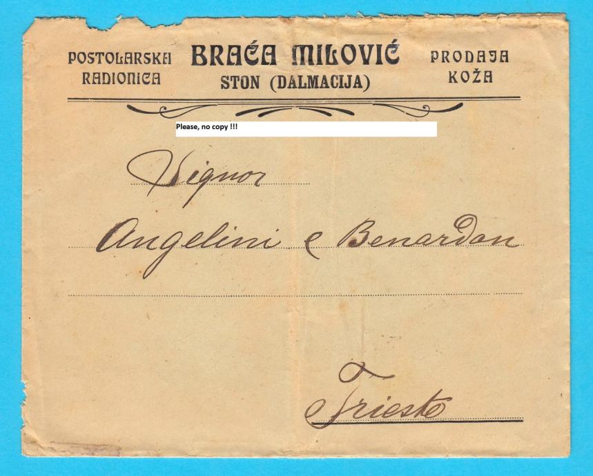 BRAĆA MILOVIĆ - STON (Dalmacija) Postolarska radionica ... staro pismo