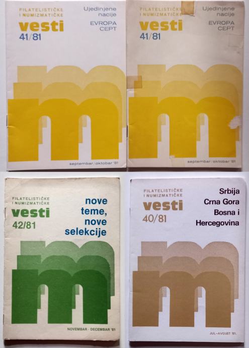 Prodajem zajedno četiri broja časopisa Filatelističke i numizmatičke "Vesti" iz 1981. godine.