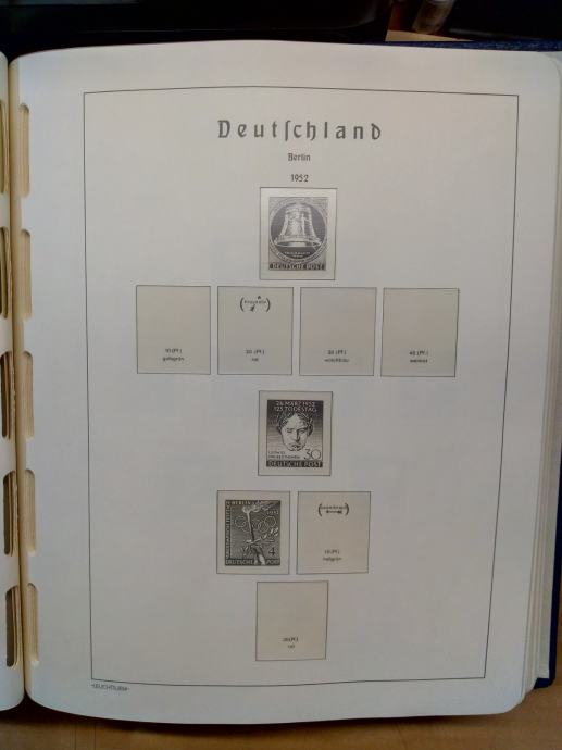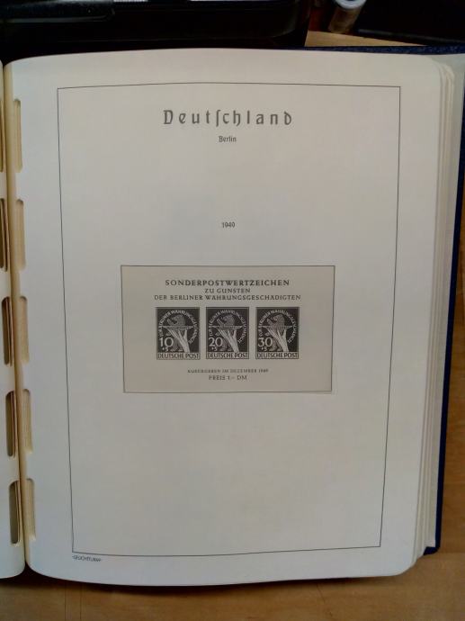 Lechtturmov album sa albumskim listovima. Kolekcija u vrlo dobrom plavom albumu. Sadrži samo MNH marke i blokove. Koliko znam u njoj su svi blokovi. Popunjenost preko 95% ( Nedostaje samo 1948-49 i neki specijaliteti. Onako, od oka, procijenio bi da kataloški vrijedi barem 3000 eura. Radi težine (cca 3 kg) šaljem kao paket.