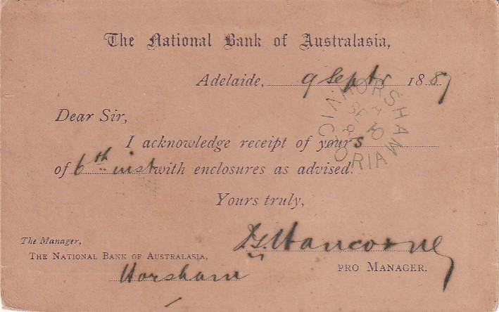 DOPISNICA BR SOUTH AUSTRALIA 1887