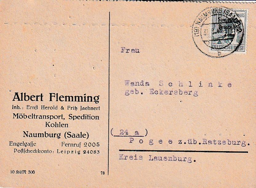 DOPISNICA SOVJETSKA ZONA NJEMAČKE PEČAT NAUMBURG