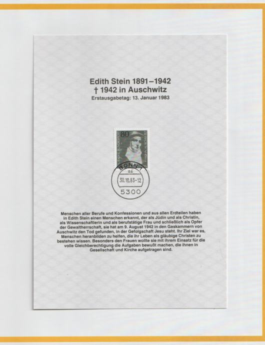 EDITH STEIN 1891-1942 - TOTH 1942 IN AUSCHWITZ