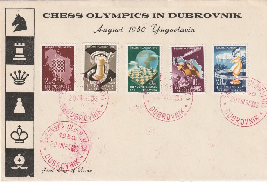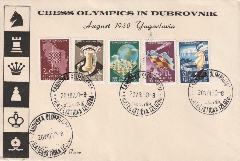 F.N.R.J. DUBROVNIK ŠAHOVSKA OLIMPIJADA 1950 dvije omotnice