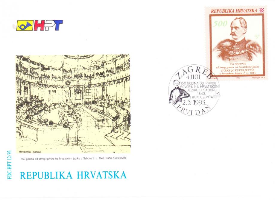 FDC 1993.150 G OD PRVOG GOVORA IVANU KUKULJEVIĆA U HRVATSKOM SABORU
