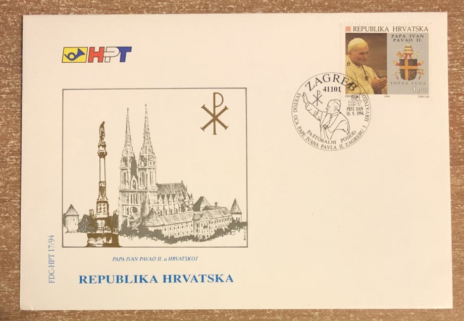 FDC HRVATSKA - PAPA IVAN PAVAO II, PASTORALNI POSJET