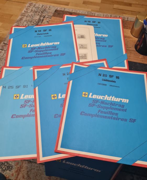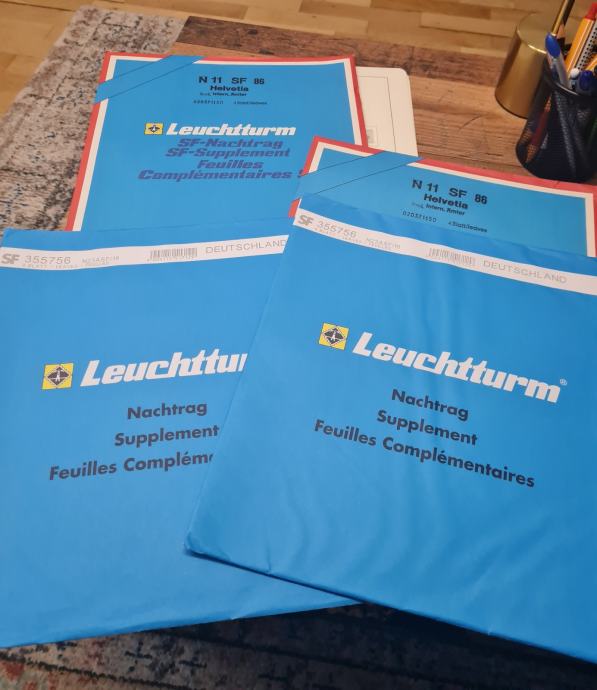 Sveukupno 12 paketa albumskih listova LEUCHTURM i KABE, razne godine, ,Njemačka, Austrija, Švicarska i Liechtenstein, nekoliko kompleta neotvoreno, sve s fotografija....