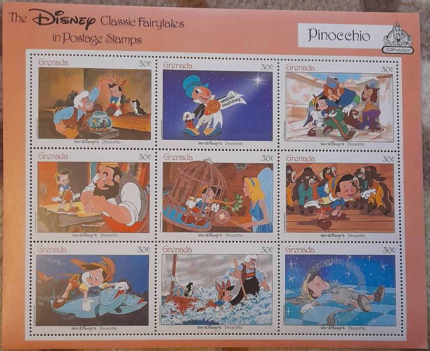 Grenada,Walt Disney, 6 malih arčića sa motivima iz crtanih filmova