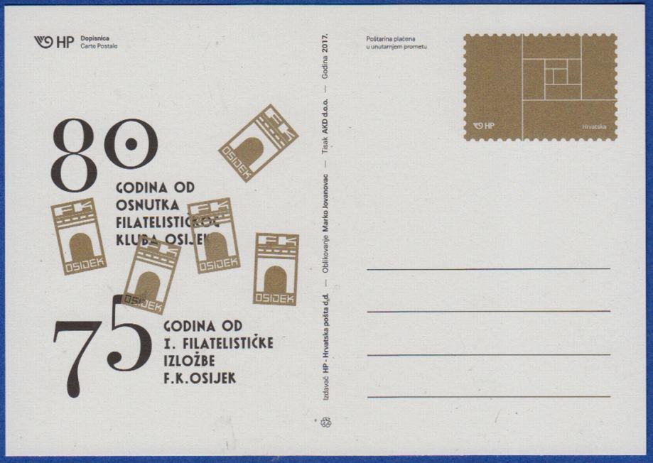 HR DOPISNICA 2017. 80 g. FILATELIJA OSIJEK