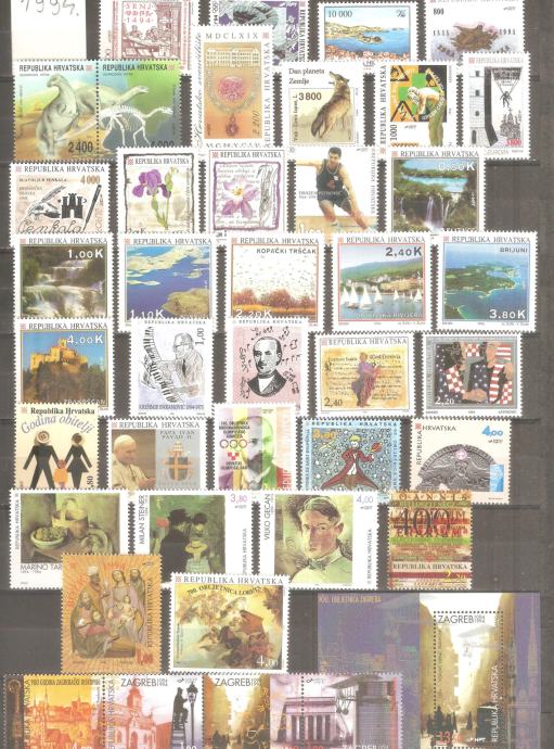 Kompletna 1994. godina poštanskih marka Hrvatske, MNH.