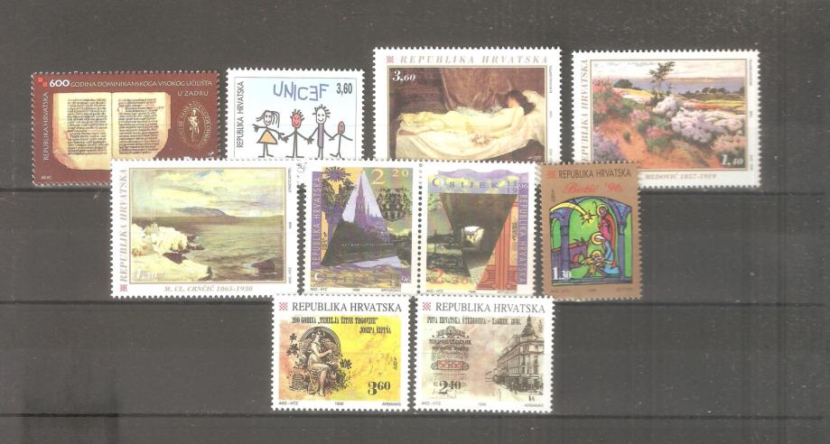 Kompletna 1996. godina poštanskih marka Hrvatske, MNH.