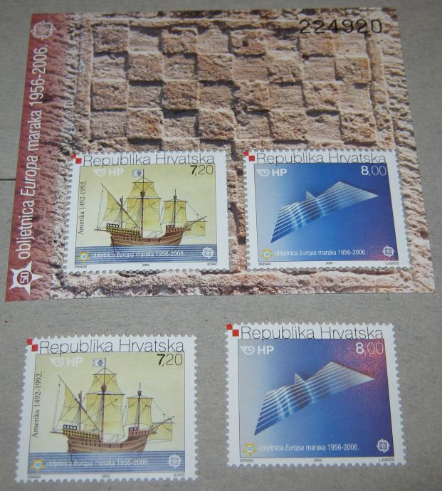 Hrvatska, 50 godina maraka Europa-CEPT,serija i blok,nežigosano