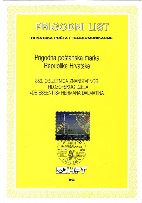 Hrvatska filatelija Prigodni list 850. OBLJETNICA DJELA ’DE ESSENTIIS’