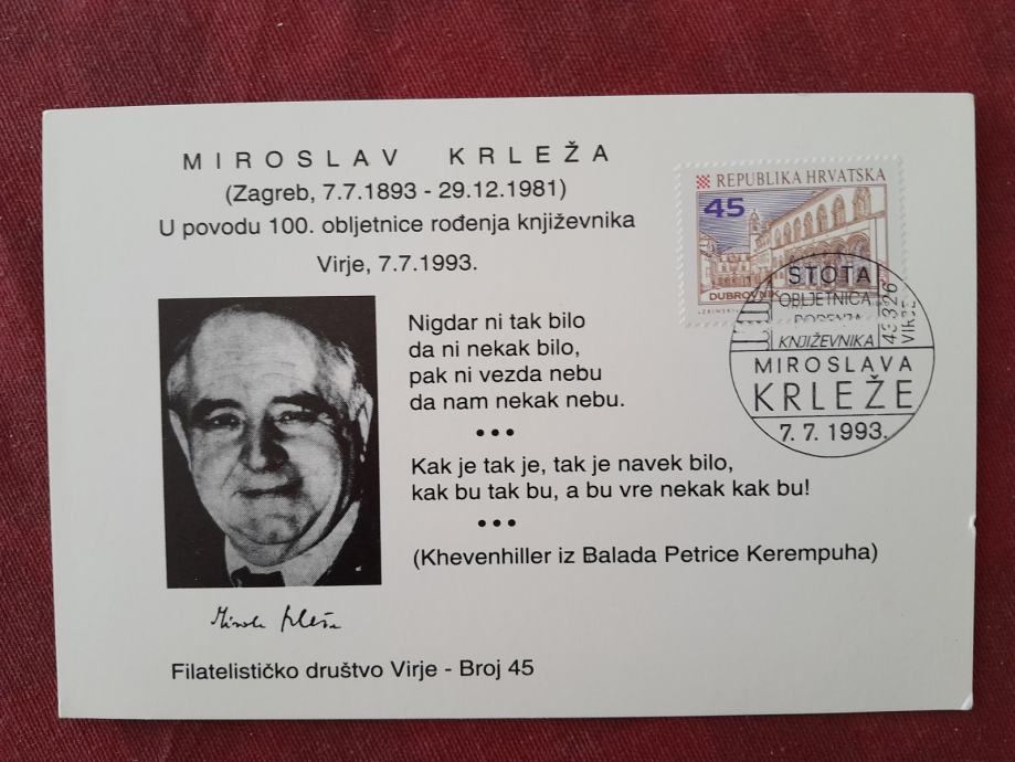 HRVATSKA KNJIŽEVNOST - filatelija, 17 karata i omotnica, 1 € /kom