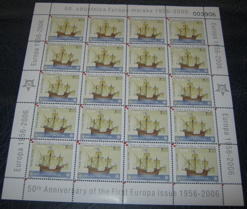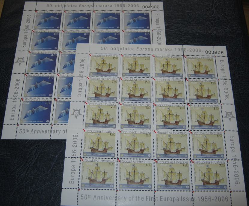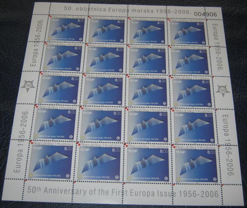 Hrvatska,arčići (nerabljeni) prigodnog izdanja EUROPA CEPT,50 godina, izašli 2005. godine. Nominala arčića je 304 kn. Po Michel katalogu,arčići notiraju 100 Eura. Arčići su numerirani.