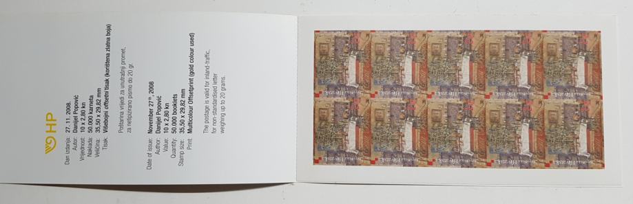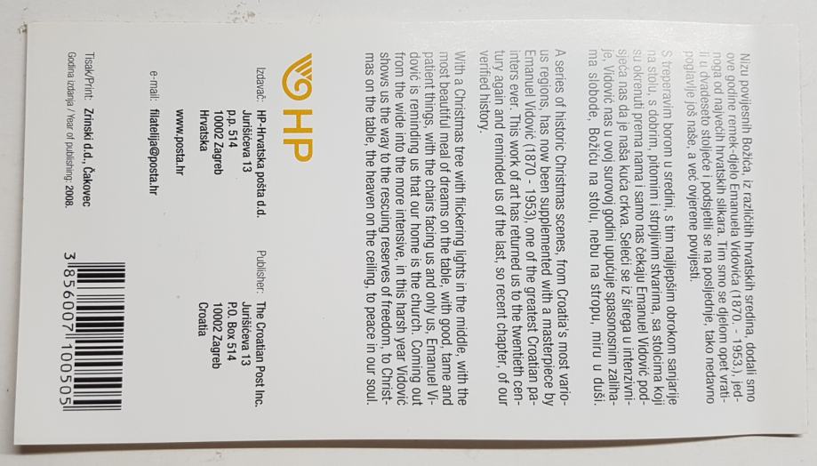 KARNET BLOK, BOŽIĆ 2008, SAMOLJEPLJIVE POŠTANSKE MARKE 10 kom.