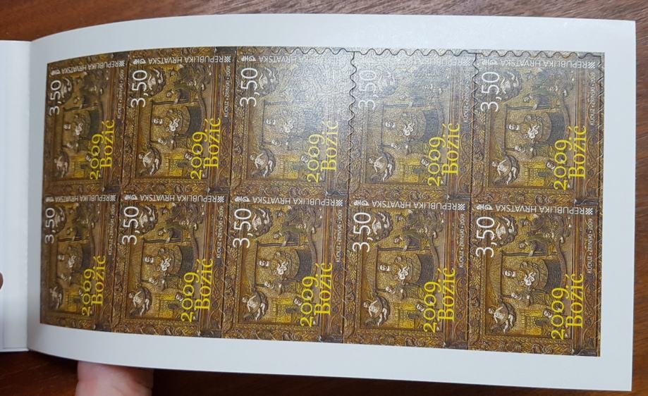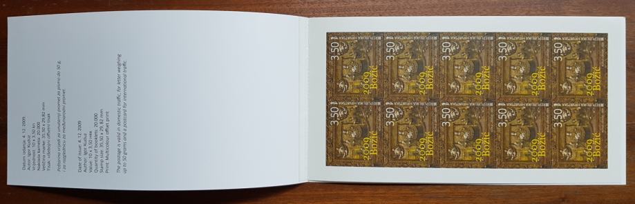 KARNET BLOK, BOŽIĆ 2009, SAMOLJEPLJIVE POŠTANSKE MARKE 10 kom.