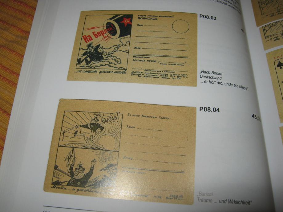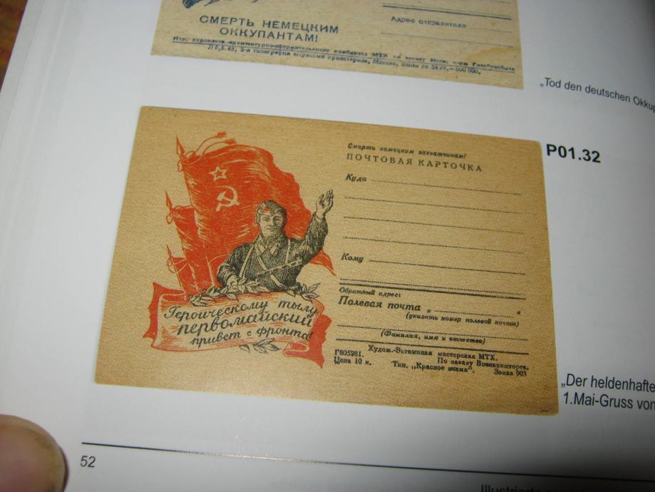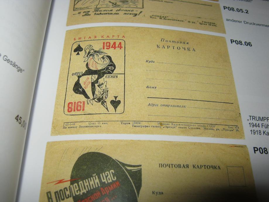 Vrlo zanimljiv katalog ilustrirane poljske pošte Crvene armije u II sv. ratu. U ovom katalogu obrađene su jednostrane dopisnice,omotnice i pisma u arku.Katalog ima 312 stranica u boji.Prodajna cijena mu je 42 eura.Obrađuje kod nas gotovo nepoznate dopisnice ovog područja. Zanimljivo je da je autor ovog kataloga nijemac Albert Pflüger.