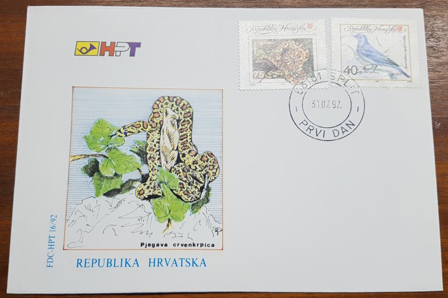 KOVERTA PRVI DAN HRVATSKA PJEGAVA CRVENKRPICA 1992.