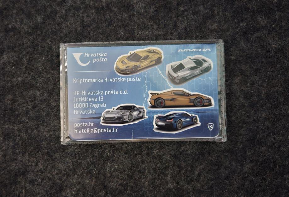 Hrvatska pošta u suradnji s tvrtkama BitX i NodeFactory predstavlja treću hrvatsku kriptomarku. Hrvatske kriptomarke zamišljene su kao savršena kombinacija analognog i digitalnog, a ova treća posebno je važna jer ovjekovječuje hrvatski hiperautomobil budućnosti – Rimac Neveru.