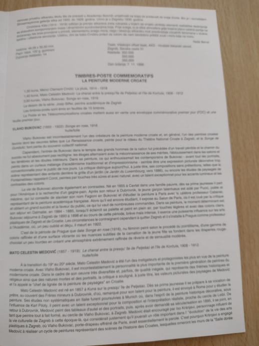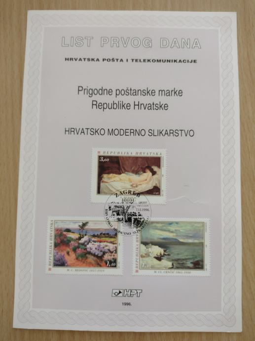 Prodajem List prvog dana RH - hrvatsko moderno slikarstvo 1996.