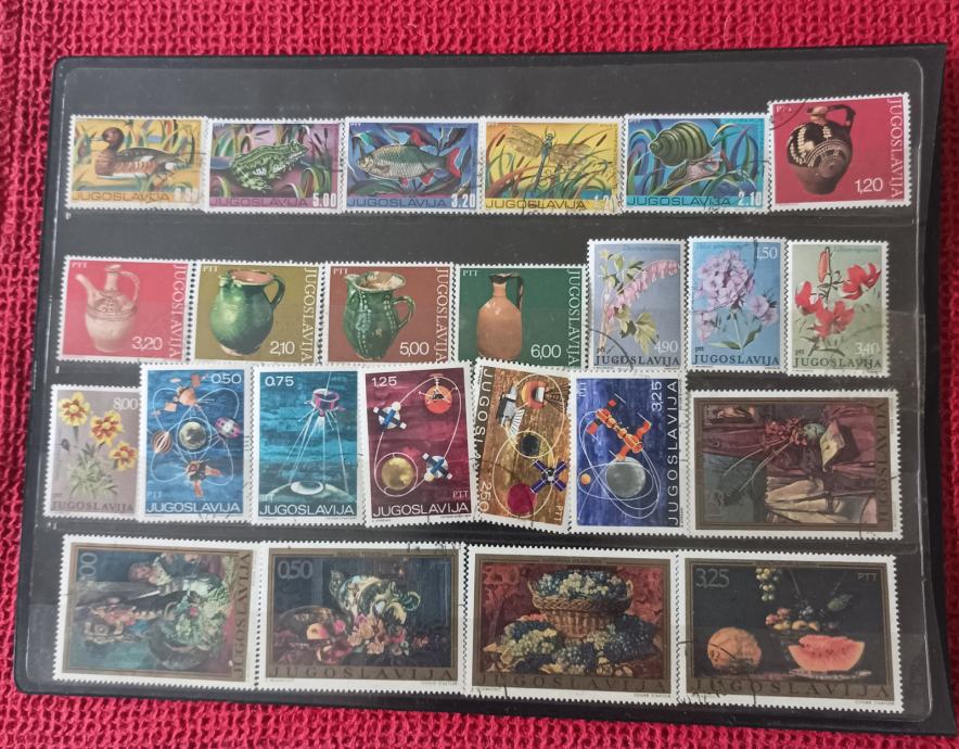 Pet različitih serija poštanskih marki iz Jugoslavije (ukupno 24 marke), s pečatom. Odlično su očuvane. U Zagrebu moguće osobno preuzimanje.