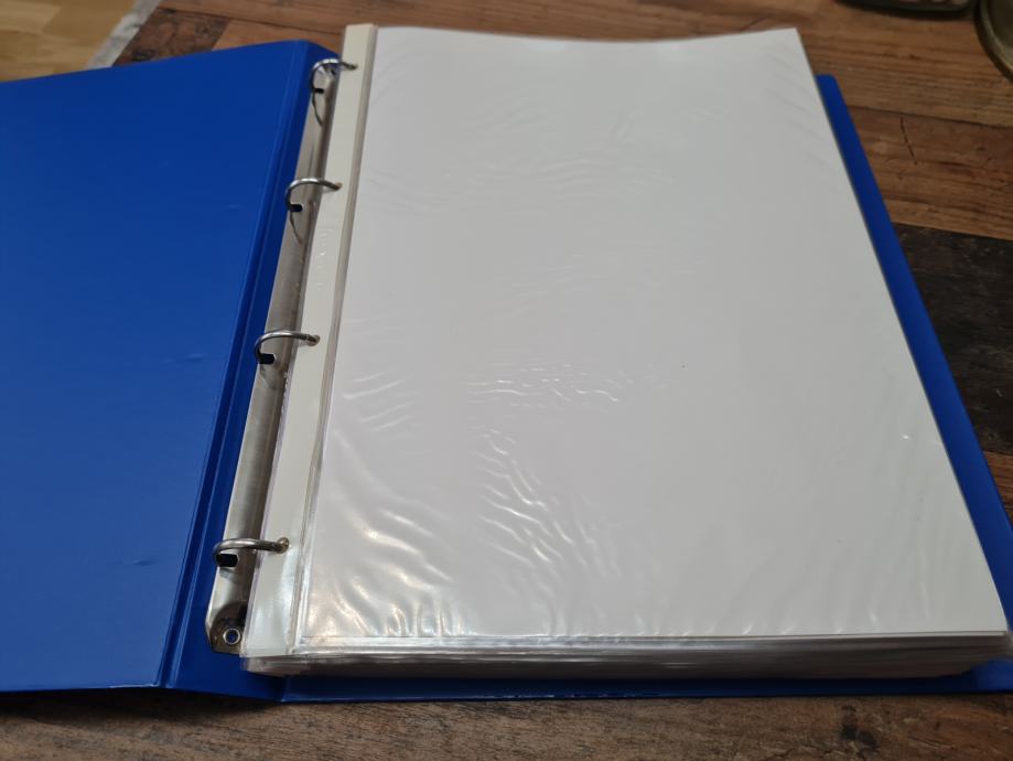 Album za pisma, novčanice, arke, arčiće, blokove, dokumente...., 46 kvalitetnih uložnica (A4), kapacitet preko 90 pozicija, ušćuvano....