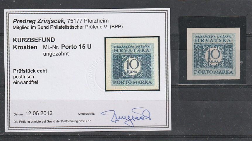N.D.H.1942 PORTO MARKA 15 U ATEST ZRINŠČAK PROBA 10 KUNA