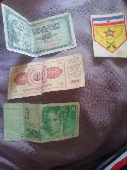 Poštovani, prodajem novčanicu 20 maraka iz 1993. i znak /krpicu za našiti na odoru, te dvije novčanice iz 1981. Prilažem sliku. Unaprijed hvala.