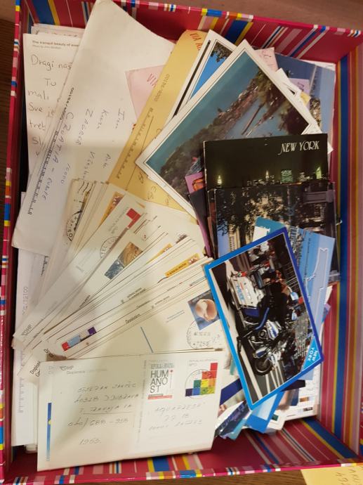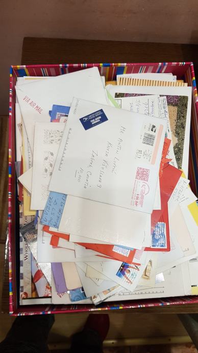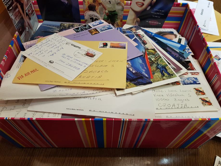Kutija puna pisama, čestitki, razglednica i dopisnica.