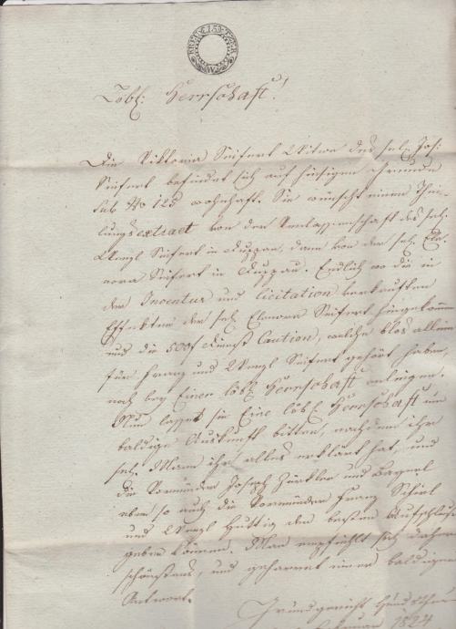 PISMO IZ 1824 WIEN