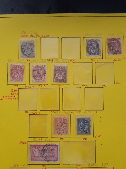 Poštanske marke francuske iz 1900 - 1902 godine Allegoria 22€ po Michel katalogu.