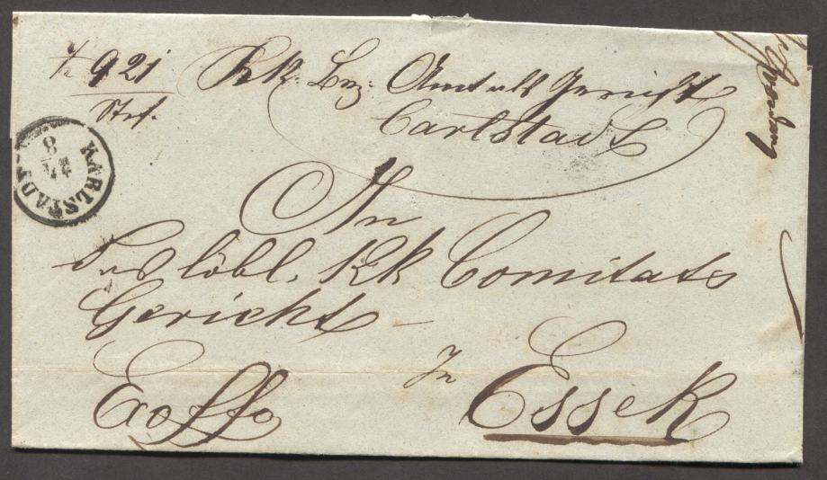 PREDFILATELIJA - KARLOVAC / OSIJEK, iz 1857.g.