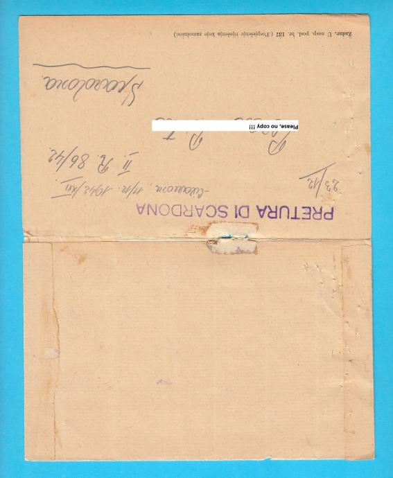 PRETURA DI SCARDONA (Skradin) 2. svjetski rat, putovalo 1942. NEPOZNAT