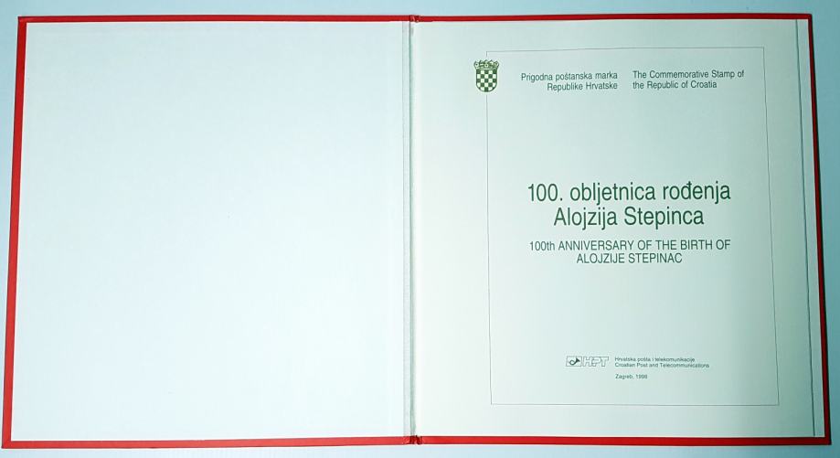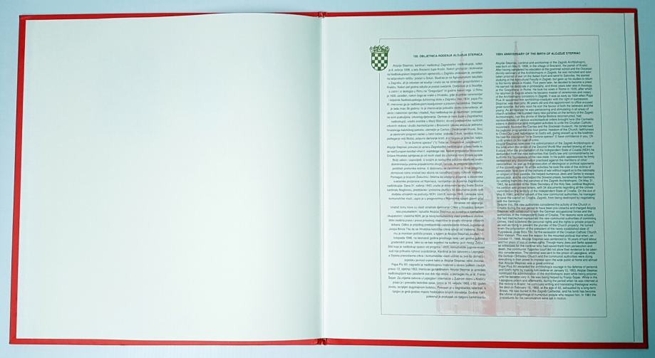 PRIGODNI ALBUM HR POŠTE, 100 OBLJETNICA ROĐENJA ALOJZIJA STEPINCA 1998