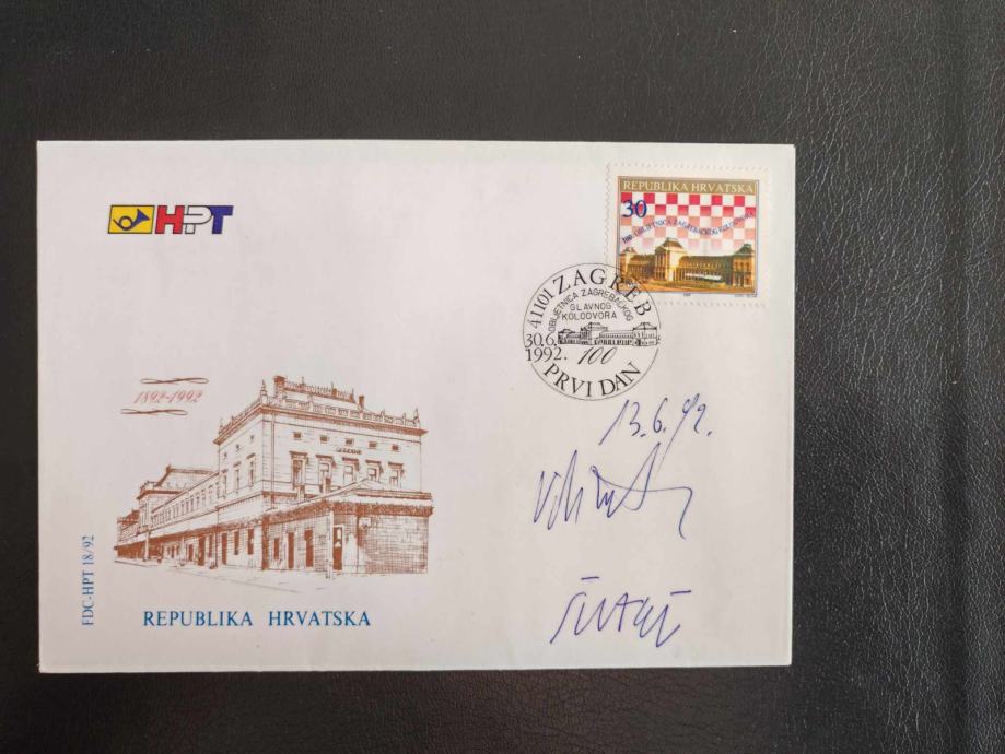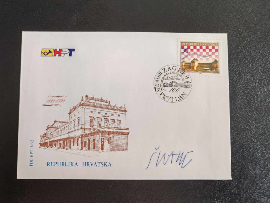 PRVI DAN kuverta, marka , autogram , Šutej , Žiljak