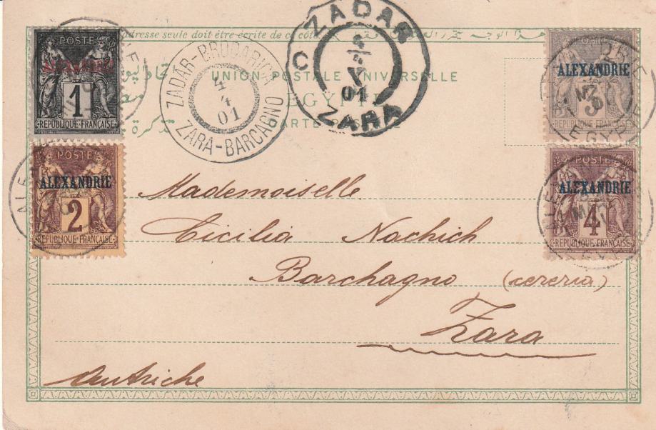 RAZGLEDNICA FR AFRIKA PUTOVALA IZ ALEXANDRIJE U ZADAR 1901