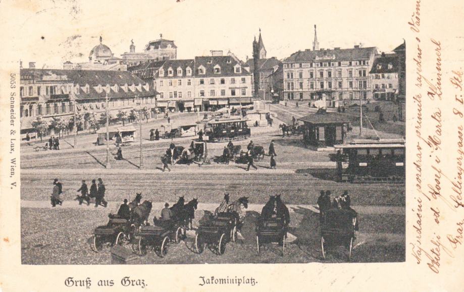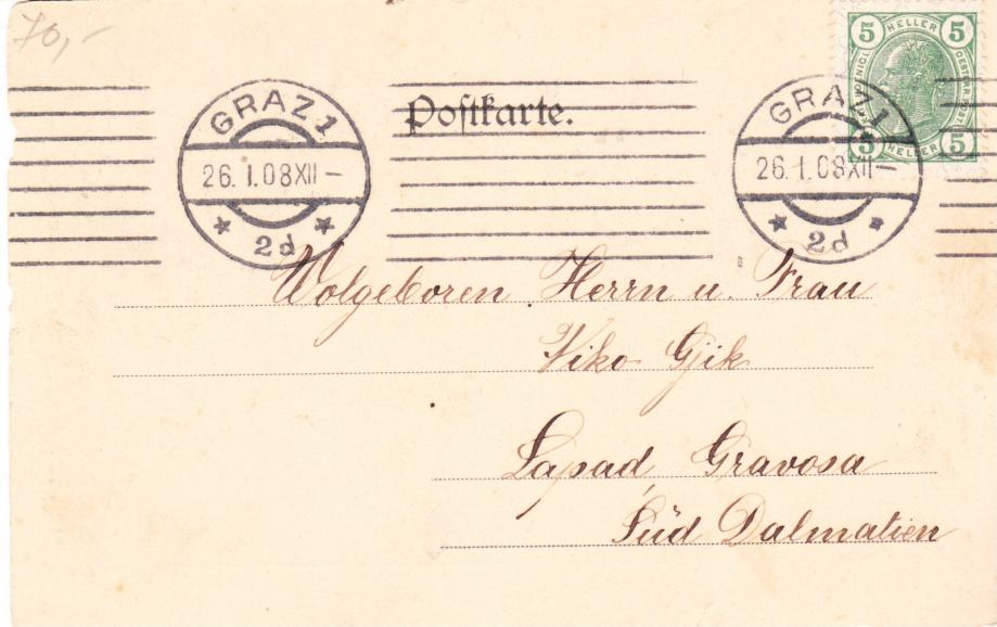 Razglednica putovala iz Graza negdje u Dalmaciju 1908