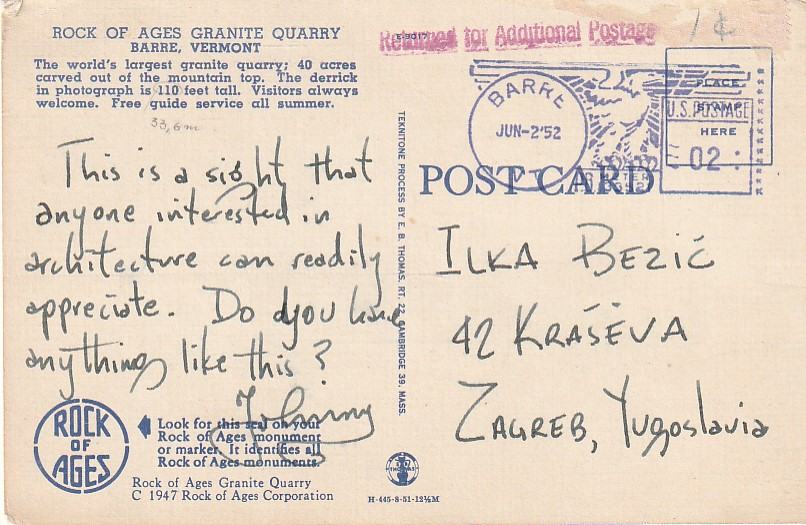 RAZGLEDNICA USA , BARRE-VERMONT 1952