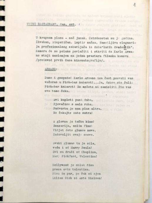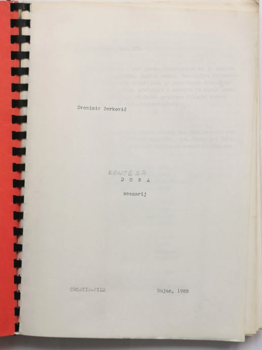 Zvonimir Berković - Originalni scenarij iz Rujna 1988.godine za film KONTESA DORA