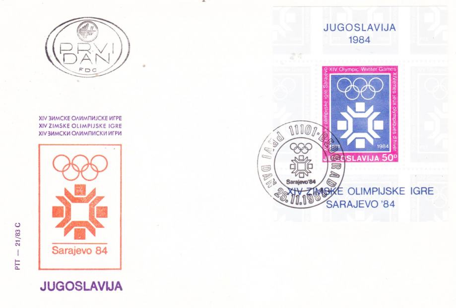 SFRJ 3 FDC Sarajevo 1984 serija i blok