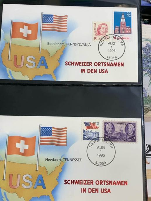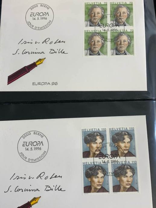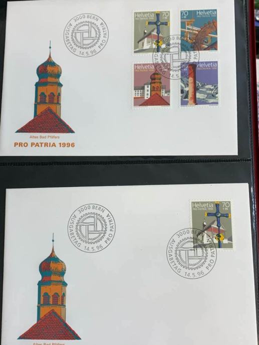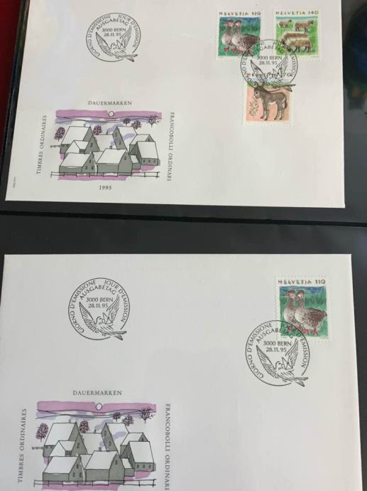 Švicarske marke sa pečatom prvog dana na prigodnim kuvertama u albumu