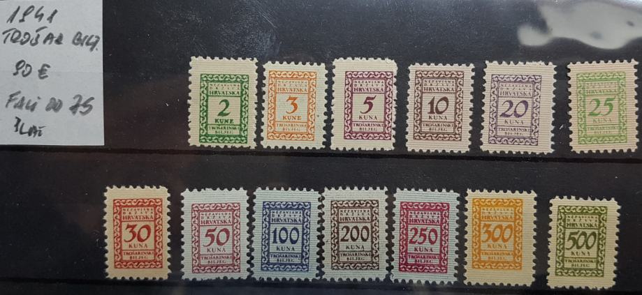 TAKSANE MARKE VINJETE BILJEZI, N D H TROŠARINSKI BILJEG 1941