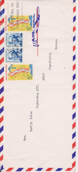 USA PISMO AVIONSKA POŠTA PUTOVALA IZ SEATLE U SPLIT 1967