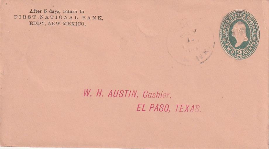 USA PISMO PUTOVALO EDDY-NEWMEXICO-EL PASO-TEXAS 1896