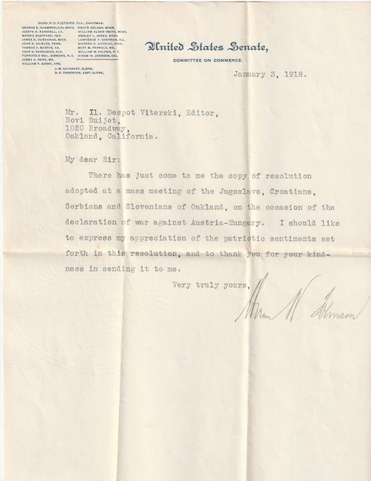 USA PISMO SENAT WASHINGTON-OUKLAND-CALIFORNIJA 1918